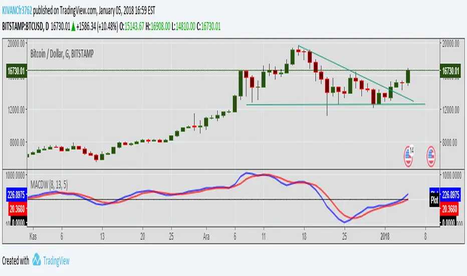 MACD indikatörünün üssel yerine AĞIRLIKLI hareketli ortalamalar kullanılarak daha erken sinyaller alabilmek için daha kısa periyotlarla yorumlanması