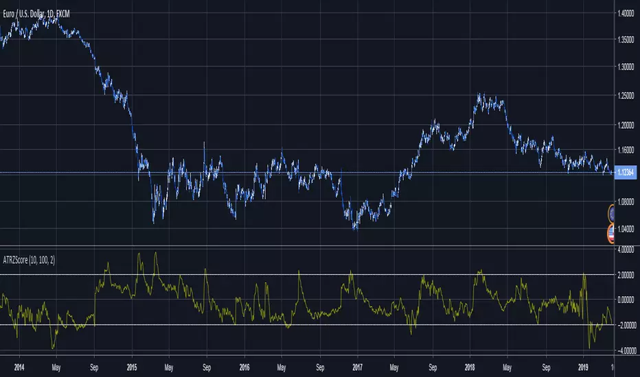 This script normalizes ATR to a Z Score, or a number of standard deviations it is from its long term average, positive or negative.