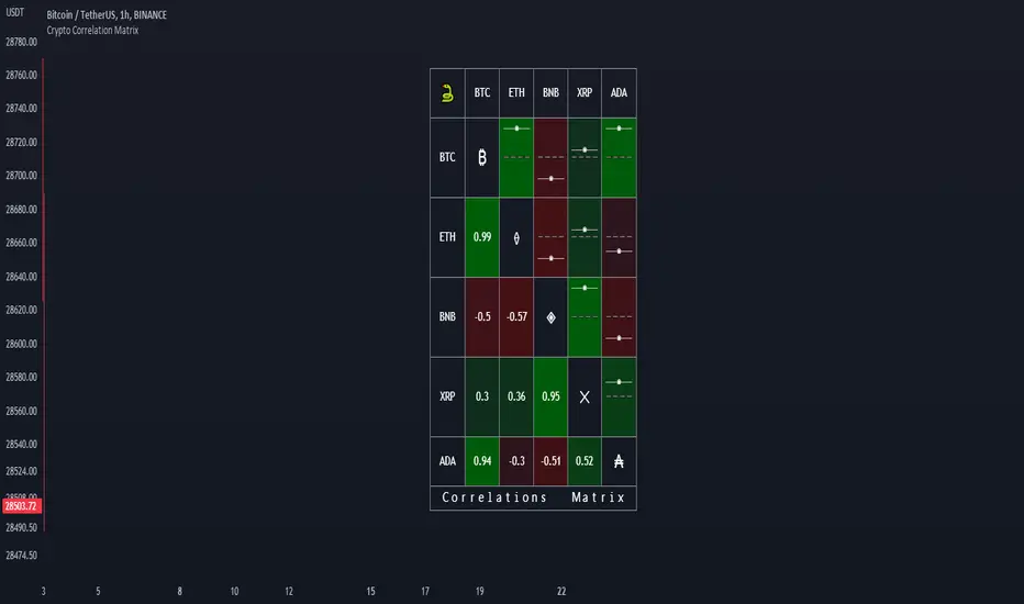 Some of the unique properties for this specific script are the correlation strength levels in conjunction with the color gradient of cells, intended for clearer readability.