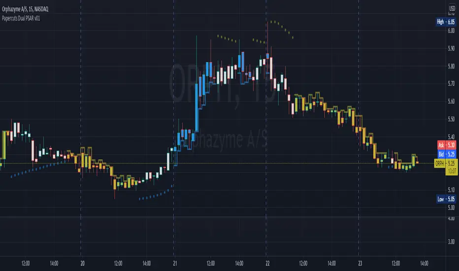 Dual PSAR is a trend following script that uses auto-higher timeframe calculation of the current timeframe to create a dual Parabolic Stop And Release.