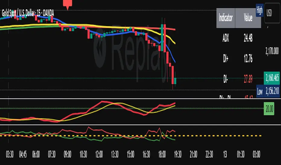 ADX (Average Directional Index) with DI+/DI- - Measures trend strength and direction