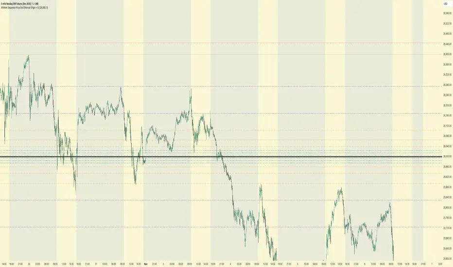 The XXMonk Sequence Grid is a precision mapping tool designed to project algorithmic price levels using harmonic numerical sequences derived from the ICT-inspired time/price symmetry concept.