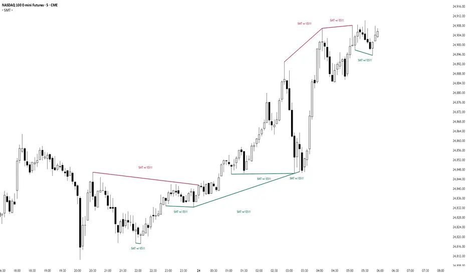Smart Money Divergence is another name for Smart Money Techniques (SMT). These patterns appear when comparing swing points, of adjustable strength, between correlated assets...