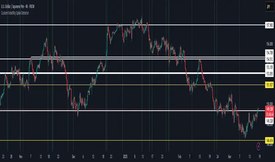 When a spike occurs, the background color of the corresponding bar automatically changes, allowing for instant recognition of market turbulence. Additionally, it can be used to draw support and resistance lines, improving entry and exit precision.
