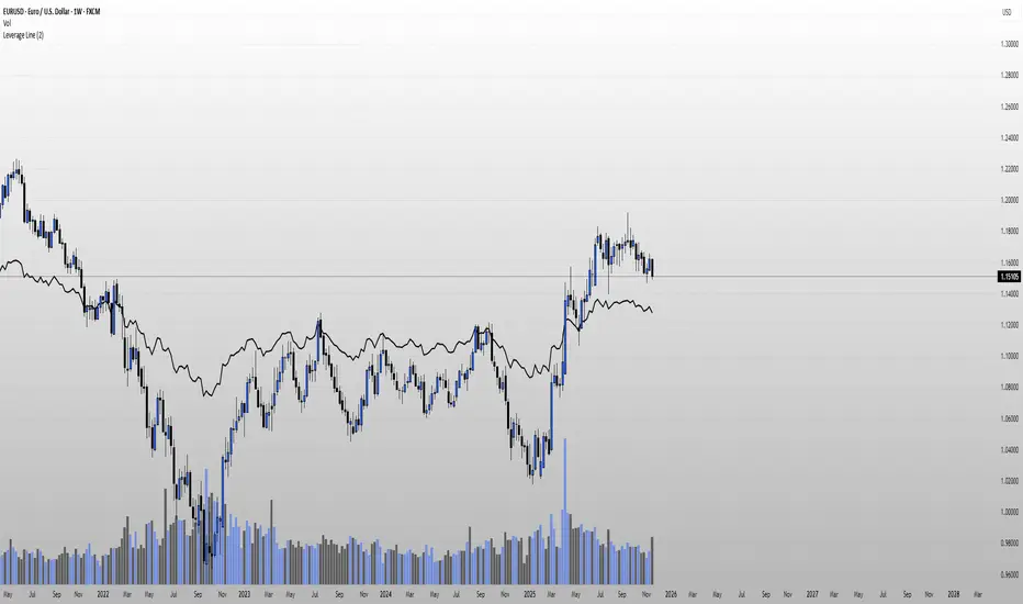 Leverage Line is an indicator represented by a simple line. This line corresponds to the average of three other values: