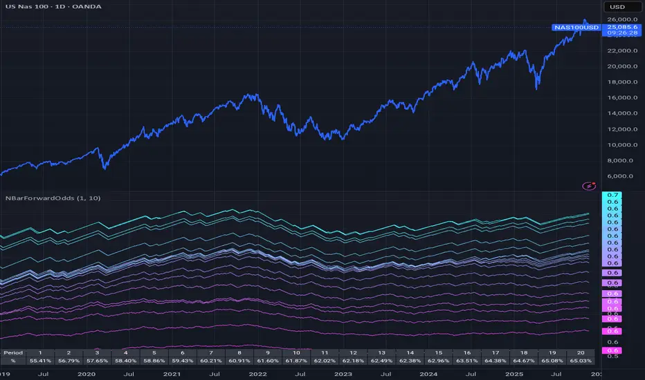Calculates the probability of a closing price exceeding a closing price at a specified interval away from the