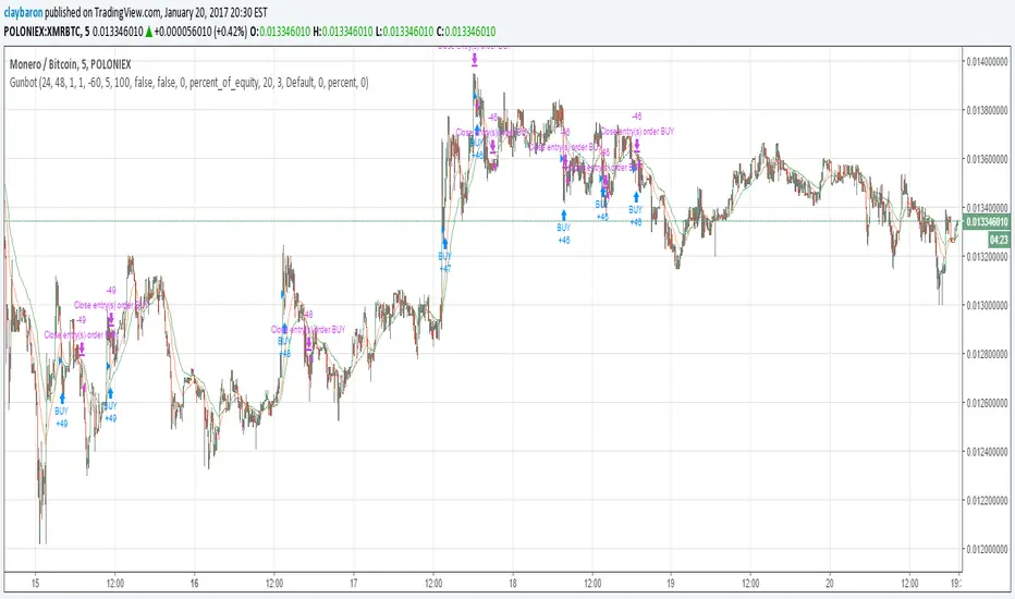 This is based on the bot found here. It isn't as smart as gunbot due to limitations of pinescript, but I am posting up for anyone using gunbot as it might help with finding good pairs to trade and good settings for those pairs as you can use this to backtest. Also, I am only guessing at some things that his strategy does, based off the instructions and examples he gave in this thread.