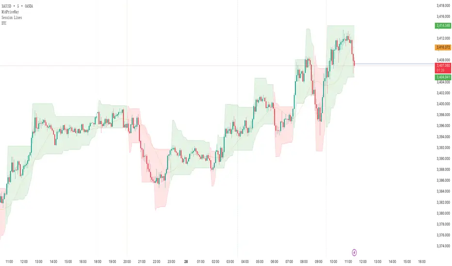 A sophisticated trend-following indicator that creates dynamic channels based on price action and volatility. This indicator helps traders identify trend direction and potential reversal points through adaptive channel boundaries.