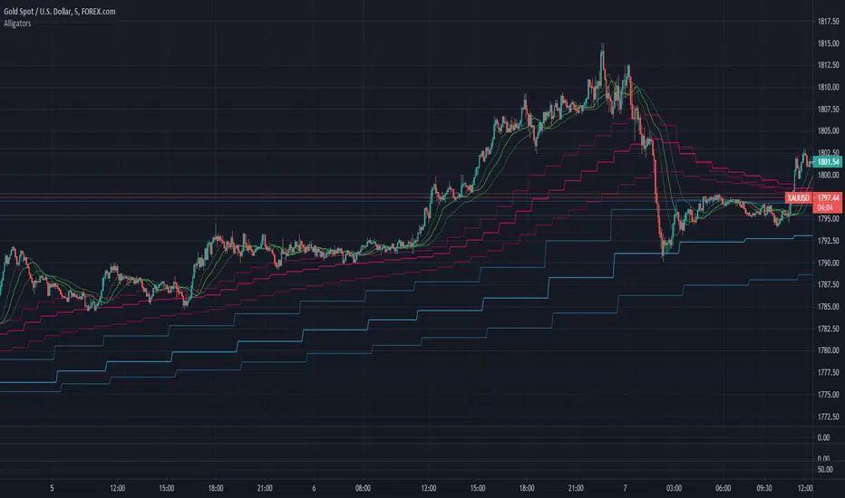 Higher time frame Alligators can often produce resistance and support as traders on different timeframes react to them. They can also act as a trend filter.