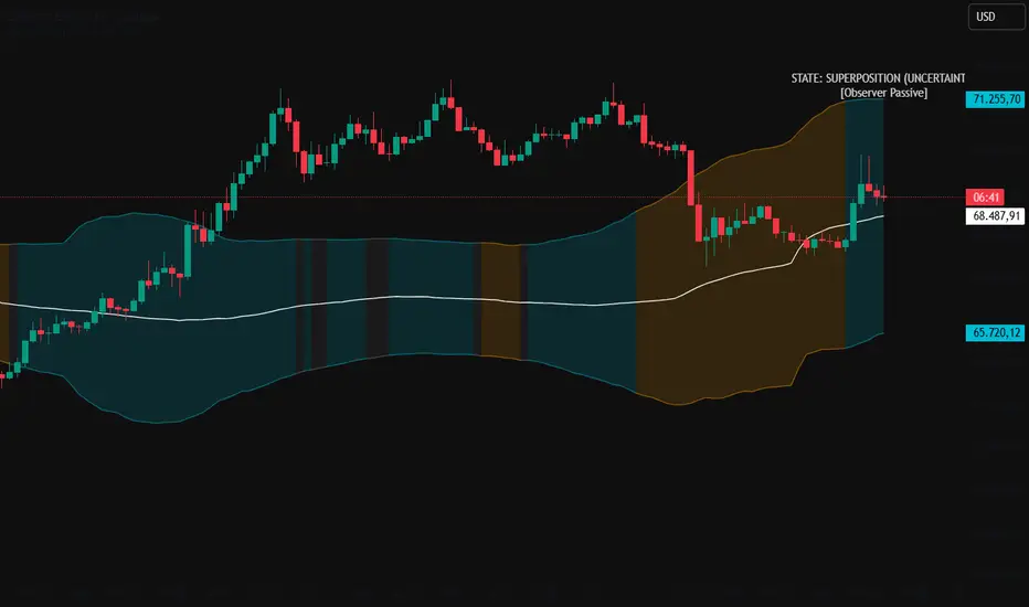 SUPERPOSITION (UNCERTAINTY): The bands are wide due to low volume. Avoid trading breakouts here; they are likely "Fake-outs" or noise.