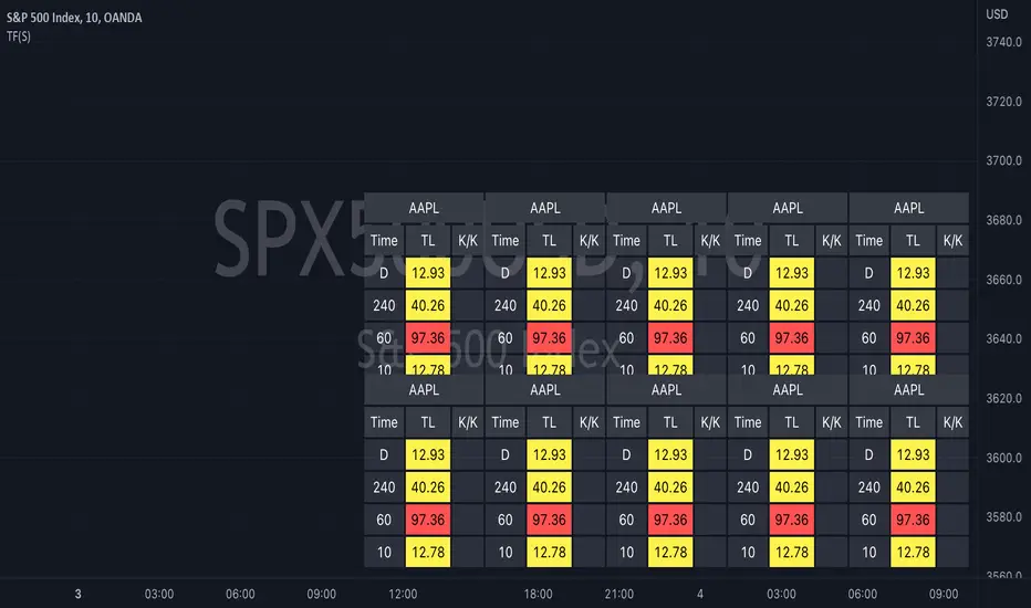 TrapFrames (Stocks) is the Stock version of Trapframes that is the table chart from Traplight that showed the current values for a symbol for Traplight and Kriss/Kross, but cranked up to 11! You can select from a large list of stocks to create a dashboard-like view of your favorite symbols. So that you can "Check the Weather" so to speak. This is mainly to be used as a companion indicator to Traplight. So, that you can find which of your symbols looks interesting, and delve more deeply into them on an individual basis from there.