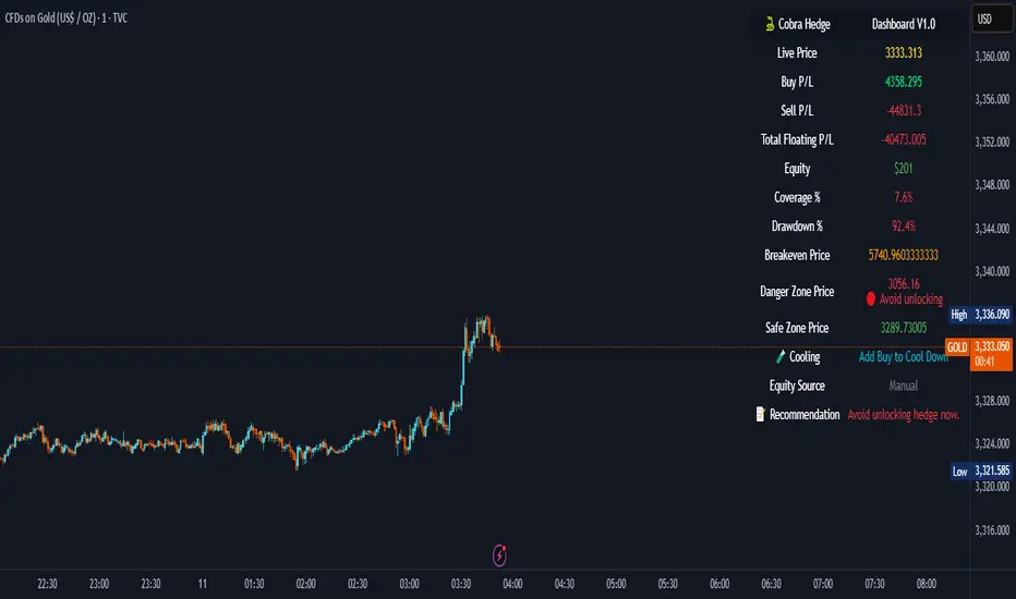 Cobra Hedge Dashboard is built specifically for traders managing open hedge positions. It provides a real-time view of directional pressure, smart zones, and price behavior to help make informed decisions such as: