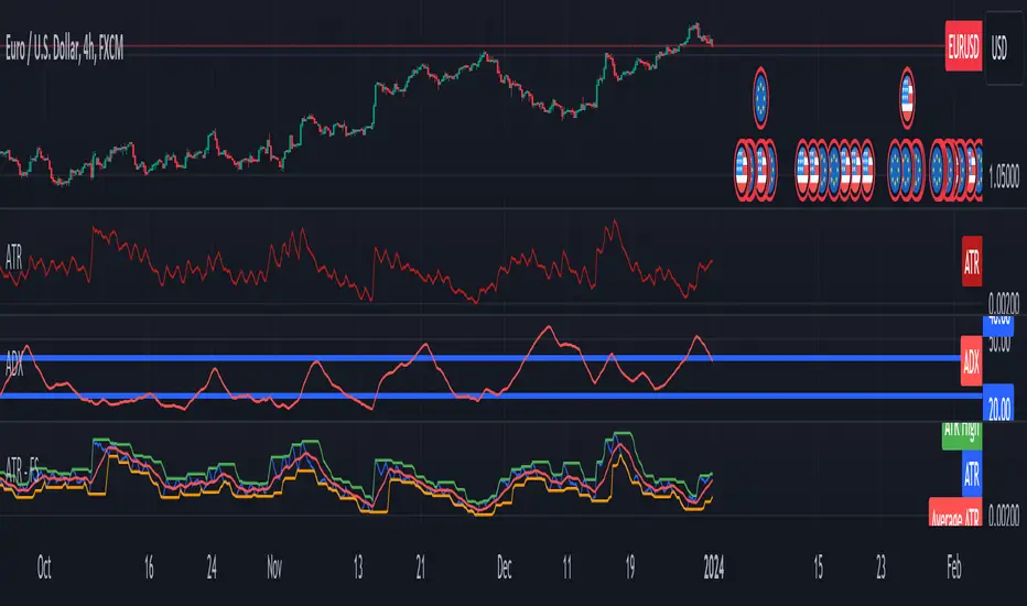 This script calculates and visualizes the Average True Range (ATR) along with its moving average, highest, and lowest values over a defined period. The ATR is a widely used volatility indicator in trading that measures the degree of price movement within a market. By incorporating both the average ATR and the high/low ranges, this script provides a comprehensive view of market volatility dynamics.