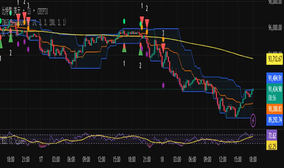 TMAX Breakout is a trend-following breakout indicator inspired by the classic Turtle Trading System, designed by EricFreeman.It identifies Donchian Channel breakouts with an MA trend filter to help traders capture strong directional moves while reducing false breakout signals.