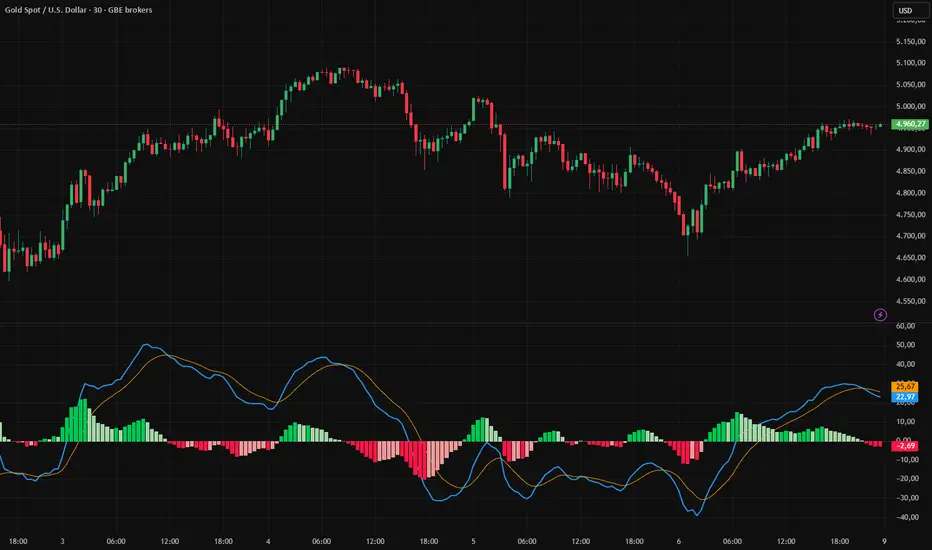 stelaraX – MACD is a classic momentum and trend-following indicator based on the relationship between two exponential moving averages. It is designed to visualize trend direction, momentum strength, and potential reversal points in a clear and uncluttered way.