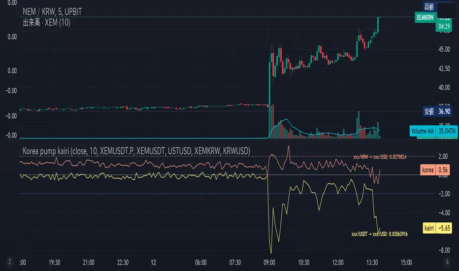 The purpose of this indicator is to show the price deviation of the three symbols xxx/USDT Spot, xxx/USD Perpetual and xxx/KRW in terms of USD.