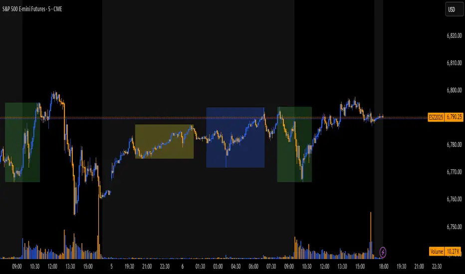 Session Boxes that measures Asian, London and NY sessions for Futures!! makes your life much easier without measure lows and highs of every session! Yellow is Asian session , Blue is London Session and Green is NY Session, but you can adjust colors as you like! I hope you Enjoy!