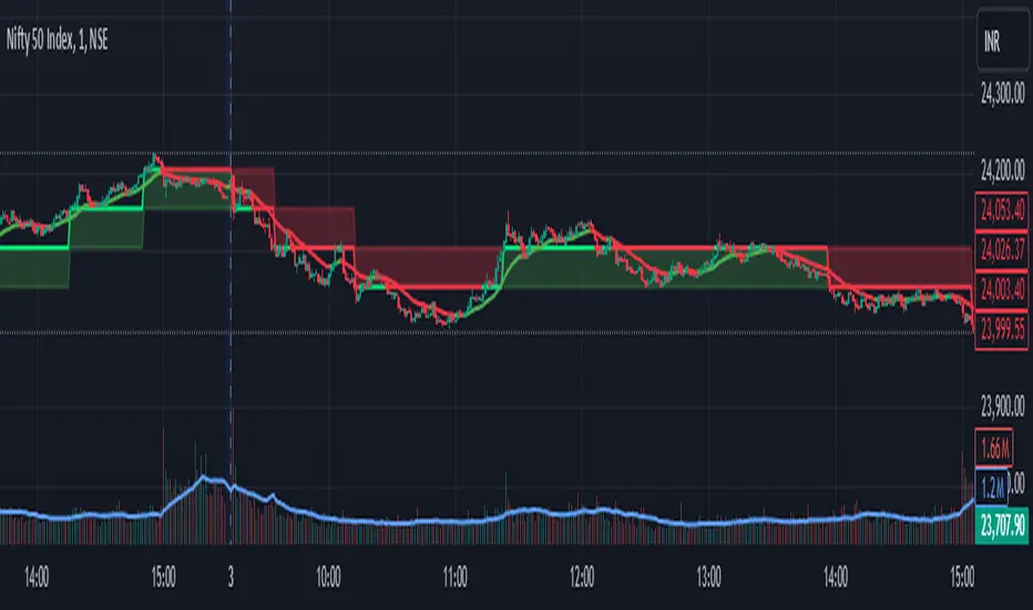 This is a Renko based Emulator to plot on any chart type which prints the box as printed on a Renko charts and is a Non-Repaint version. You can use either Traditional or ATR Method on current chart Timeframe. Option to plot an EMA Line is provided with Trend indication.