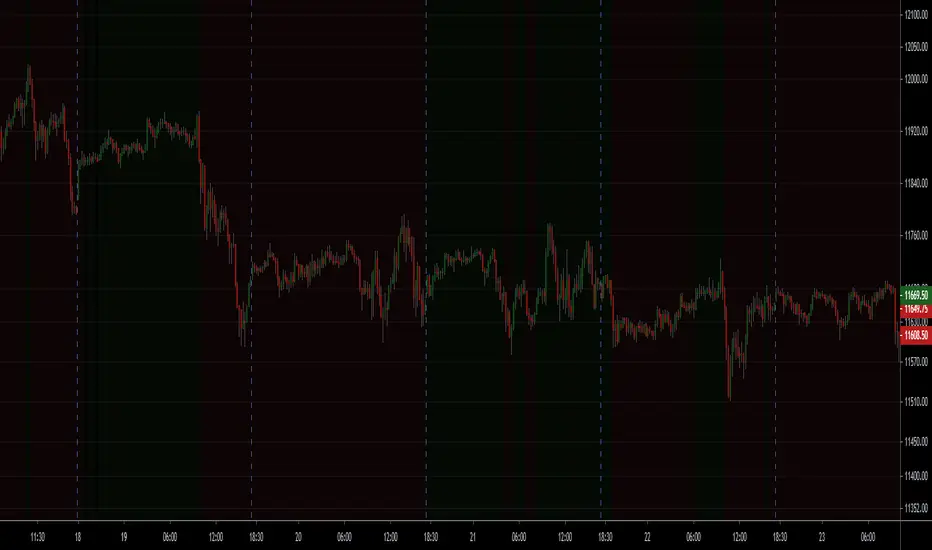 A very basic script that changes the background color of the chart to Green if the price closes over the previous day close, and to Red if the price closes under the previous day close. This allows you to easily see if it is currently a Bull or Bear market with a glance. Alerts added.