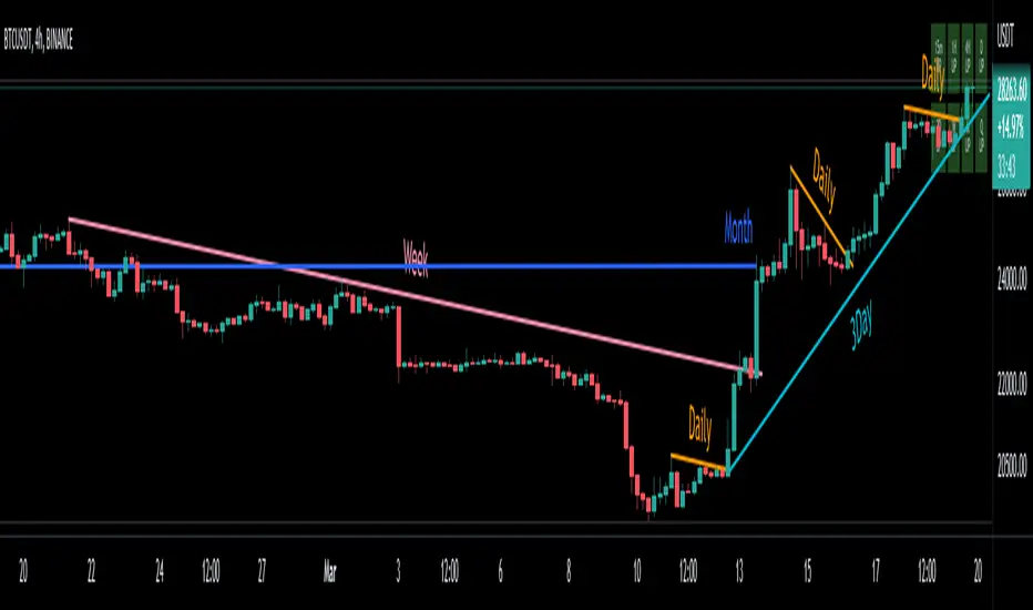 This indicator educates users on the market structure. Users can quickly break down the market into layers, analyze the layers and connect them all to understand the market as a whole. After users understand the market, users need to decide and choose a specific trend they want to trade. The basic idea is to flow with the market.
