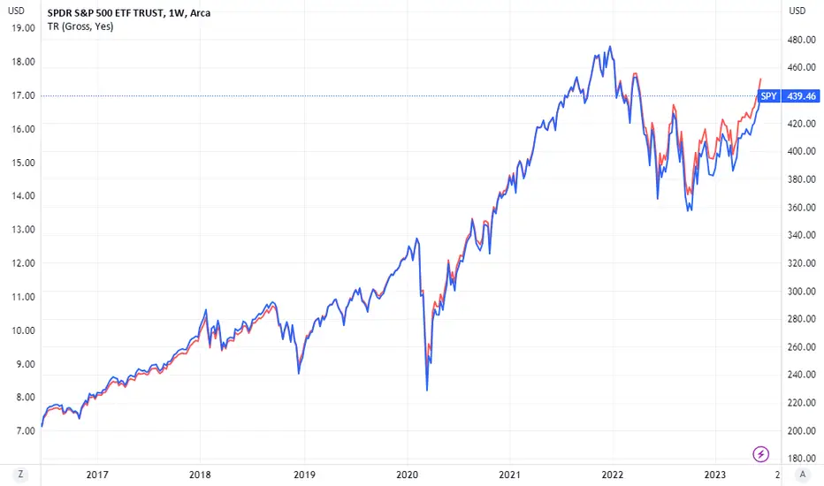 This script calculates a Total Return index for stocks that shows the total performance of a stock, incorporating returns from both the share price and dividends.