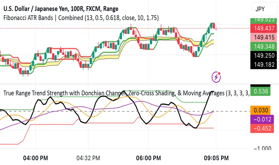 This script is designed to analyze trend strength using True Range calculations alongside Donchian Channels and smoothed moving averages. It provides a dynamic way to interpret market momentum, trend reversals, and anticipate potential entry points for trades.