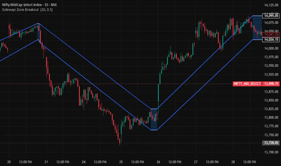 Sideways Zone Breakout is a visual market-structure indicator designed to identify low-volatility consolidation zones and highlight potential breakout opportunities when price exits these zones.