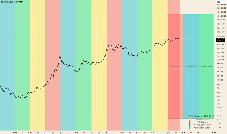 Note: This tool is not designed for short-term trading signals. It serves as a macro framework to align strategy, timing, and risk management within Bitcoin’s multi-year market structure.