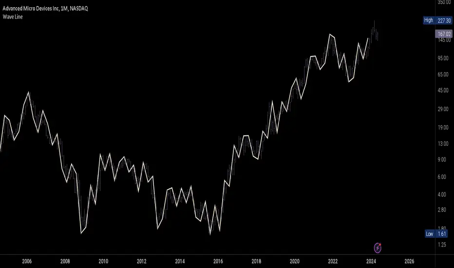 Wave Line is a chart type obtained by plotting the High and Low values in each time interval according to their sequential order. This method produces a continuous line rather than bars, which is beneficial for analyzing changes within each interval rather than focusing on the price range and open/close values. E.g for Wave Analysis.