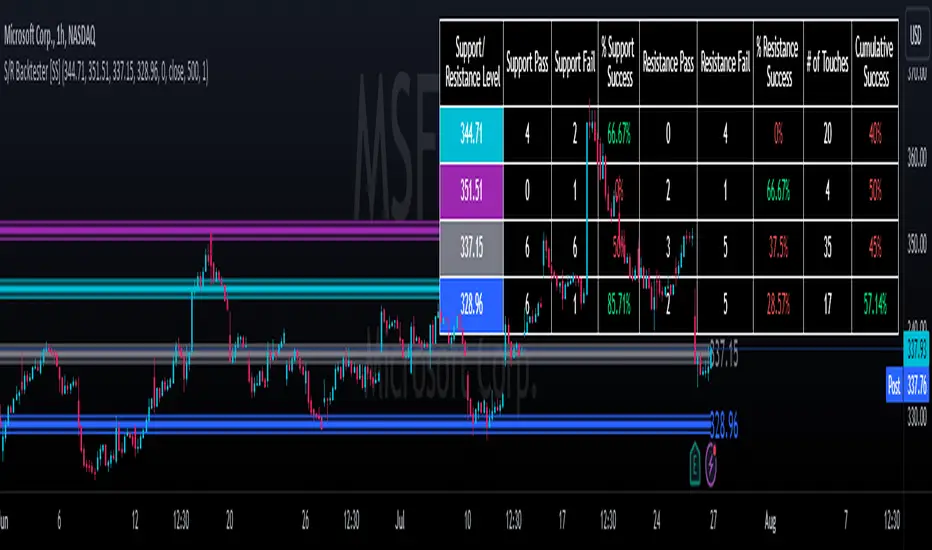 This provides the user with the ability to quantify support and resistance levels. There are plenty of back-test strategies for RSI, stochastics, MFI, any type of technical based indicator. However, in terms of day traders and many swing traders, many of the day traders I know personally do not use or rely on things like RSI, stochastics or MFI. They actually just play the support and resistance levels without attention to anything else. However, there are no tools available to these people who want to, in a way, objectively test their identified support and resistance levels.