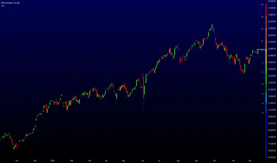 o Support Levels (S1 to S5): Five support levels corresponding to the pivot type.