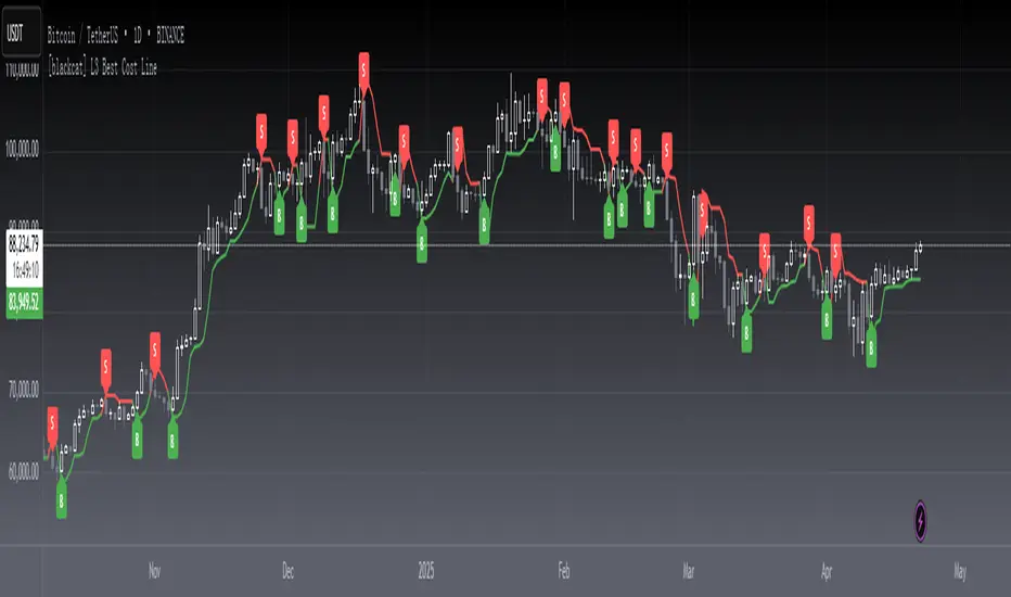 OVERVIEWThe L3 Best Cost Line indicator helps traders identify potential support and resistance levels using a sophisticated combination of price action analysis and weighted calculations. By utilizing both historical highs/lows and real-time market data, this tool provides dynamic trading signals through visual cues and alerts, making it particularly useful for scalpers and intraday traders looking to capitalize on short-term market movements.