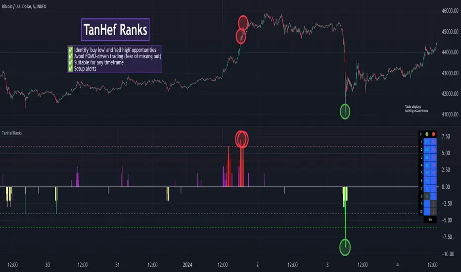 This indicator is designed to signal 'buy low and sell high' opportunities through numerical rankings, where larger numbers represent stronger signals. These numbered rankings are negative for potential ‘buy’ opportunities and positive for possible ‘sell’ moments.