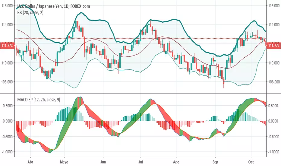 MACD slightly modified. Colored areas have been added to indicate possible purchases and sales. This indicator helps interpret the Stochastic EP indicator. It is recommended to use these two indicators together. Manual in preparation.