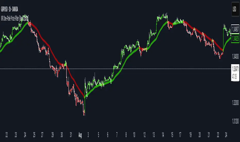 The IIR One-Pole Price Filter is a signal smoother that merges simplicity with mathematical rigor. Whether you’re filtering for entry signals, generating trend overlays, or constructing larger multi-stage systems, this filter delivers stability, clarity, and precision control over noise versus lag, an essential tool for any quantitative or systematic trading approach.