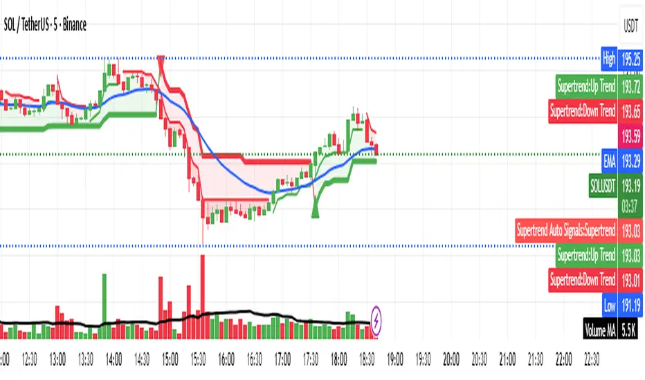 add super trend 10.3 and 10.1 in the chart, add EMA 20, use this script for auto buy and sell signal. target you have to decide based on your instrument
