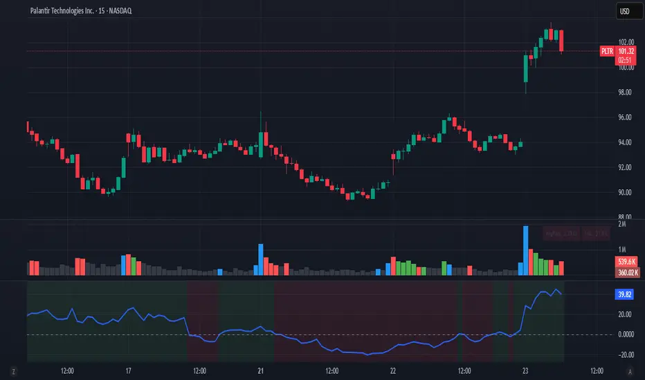 - Visual Cues: Background colors (green for positive, red for negative momentum) and a zero line help identify trend strength.