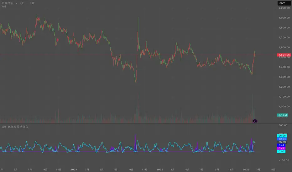 底部吸筹动能仪是一款将“量价枯竭算法”与“趋势平滑动能”相结合的复合型副图指标。它的核心价值在于解决交易者在左侧交易(抄底)时常见的“盲目摸底”问题,通过量化主力资金在极值区间的行为,配合 KDJ 动能色带,实现从识别底部到确认启动的全流程追踪。