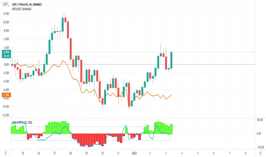 This is a modification of my Rate of Change Percentile script, used to compare the current ticker (e.g. Altcoins) to BTC.