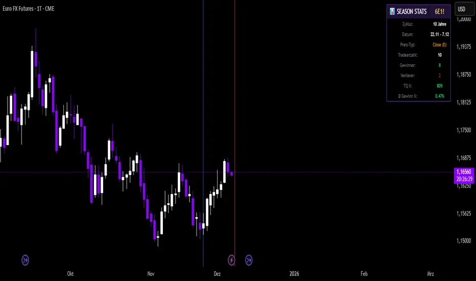This script is designed for the daily timeframe, as all calculations are based on daily candle data. The settings are easy to adjust, allowing any seasonal period displayed by the indicator to be evaluated quickly.