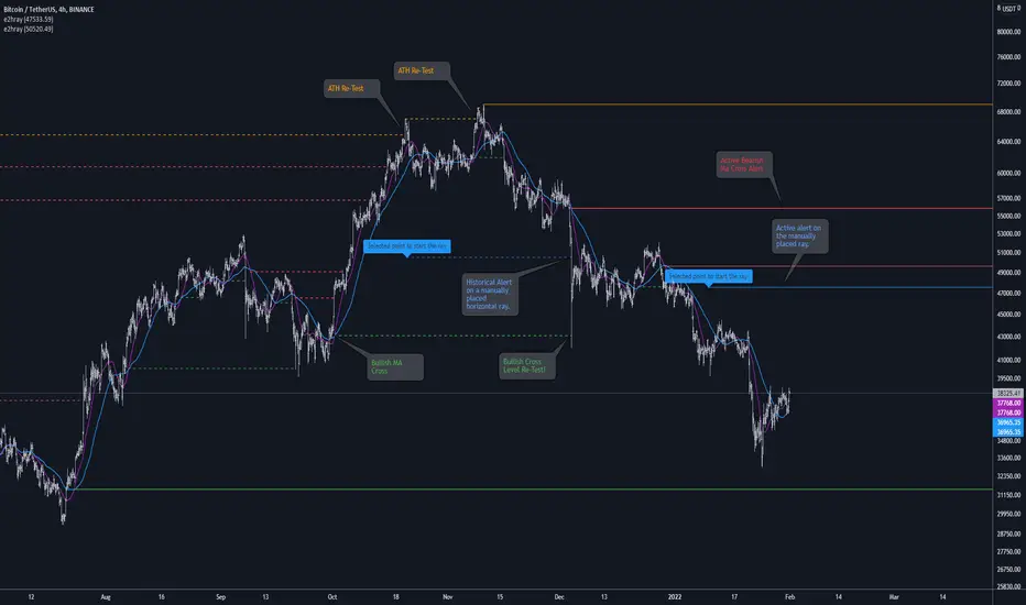 • Example 3. Horizontal ray at the all time highs with an alert.