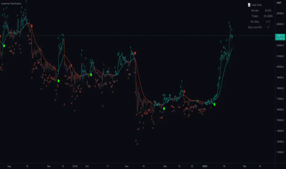 A Lorentzian Distance Classifier (LDC) is a Machine Learning classification algorithm capable of categorizing historical data from a multi-dimensional feature space. This indicator demonstrates how Lorentzian Classification can also be used to predict the direction of future price movements when used as the distance metric for a novel implementation of an Approximate Nearest Neighbors (ANN) algorithm.