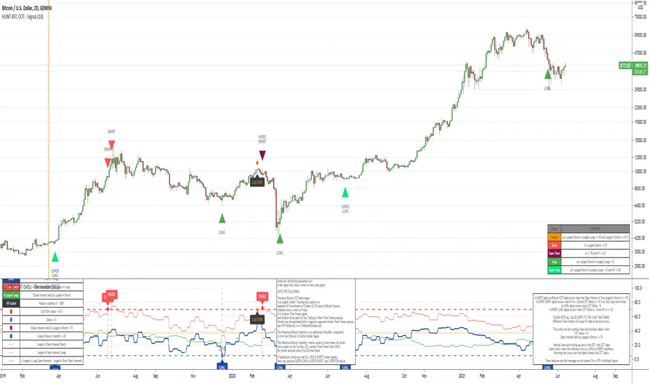 It is a Macro Timeframe signal, and should not be used for Day trading and Short Timeframe analysis, Entries may be optimised after a Hunt Bitcoin CoT [Commitment of Traders] Signal is generated by separate shorter Timeframe analysis.