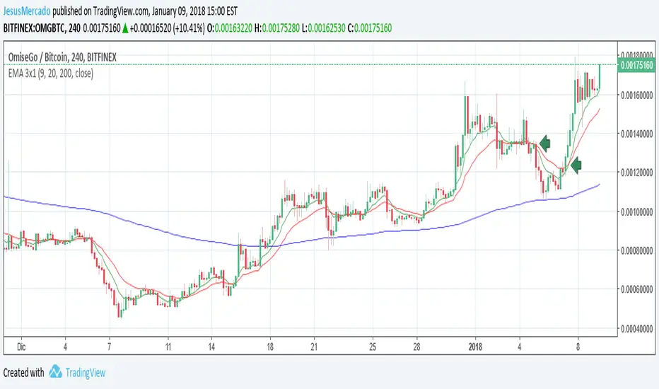 Tres ( 3 ) Medias Móviles Exponenciales en un mismo Indicador, muy útil para seguimiento y detección de tendencias.