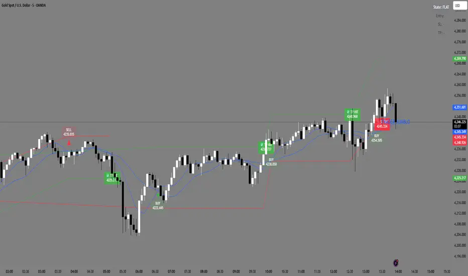 Trader Jumblo Auto Signal V6 is an advanced crossover-based signal system designed to generate persistent BUY and SELL entries with dynamic ATR-based Take Profit (TP) and Stop Loss (SL) levels.It provides clean, non-repainting trade signals that remain visible on the chart even after price movement — ensuring clarity during both backtesting and live trading sessions.