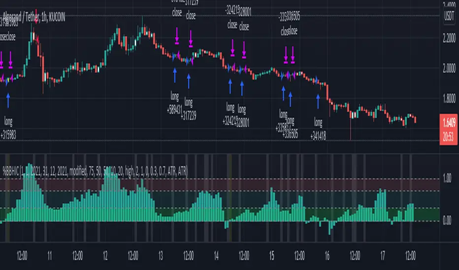 This is a simple strategy that uses Bollinger Bands %B represented as a histogram combined with Candle Beltholds and Inside candles for entry signals, and combines this with "buy" and "sell" zones of the %B indicator, to buy and sell based on the zones you set.