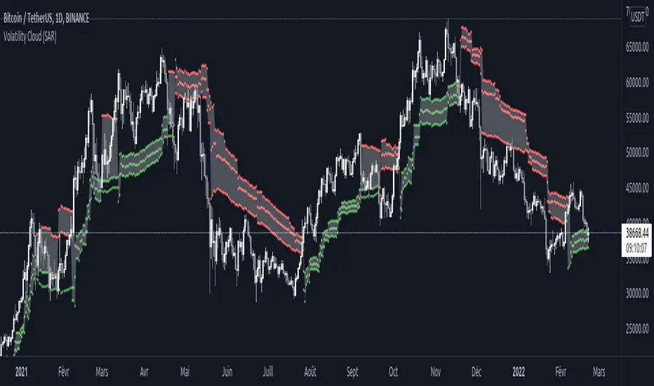 Apply the SAR point to highs, lows ans medians and create a cloud of volatility