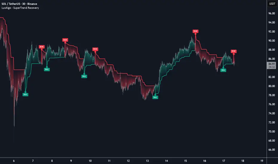 The core of this indicator lies in its two-stage calculation: the Base SuperTrend and the Recovery Logic.