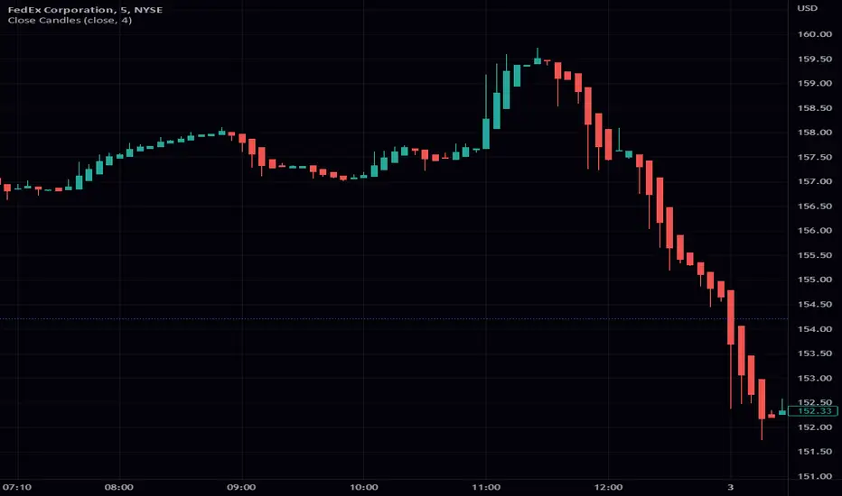Closing candle takes any input and turs it into a candle stick chart. You can go from a regular candle chart by setting the length to 1, to heikin ashi by setting the length to 4. One of the features of this scripts is the ability to reuse the function. This function is a great addition to most scripts as it makes it really easy to give your script a candle view. As always I hope that you find this release useful. If you find any bugs please let me know. The same goes with any features you might want to request. This includes requesting custom indicators. Enjoy!