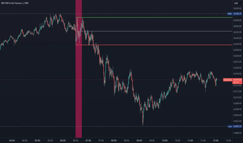 This indicator helps traders by identifying and marking the high, low, and mid-point of the first 15-minute candle of the market session. It also provides visual aids and alerts for price breakouts above or below these levels, making it ideal for intraday trading strategies.